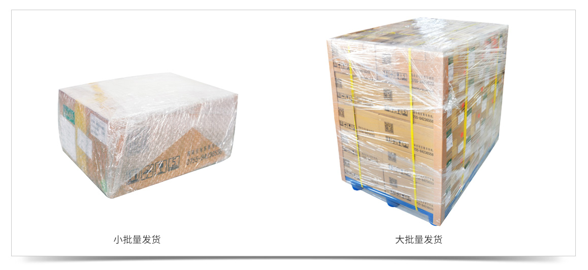 ? ? ? ? CECTN电解电容小批量发货时,直接采用缠绕膜缠绕,大批量发货时采用卡板堆垛,并用打包带进行固定,最后外层缠上缠绕膜。(见上图)
